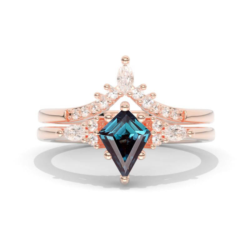 1 Carat Kite Alexandrite Engagement Ring. 1CT Fancy Kite Shape Ring Set