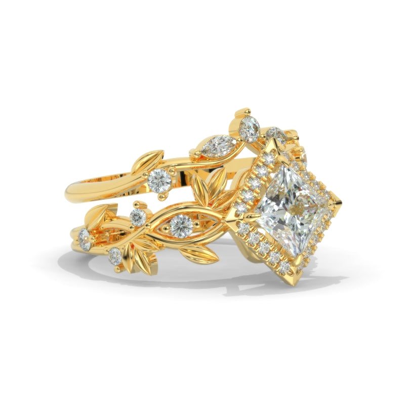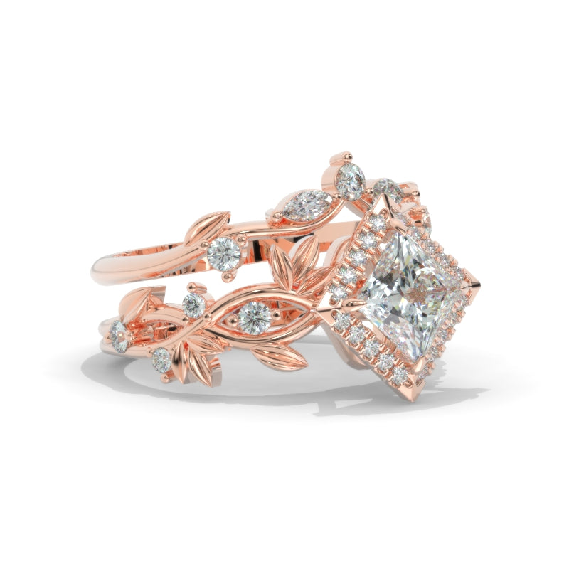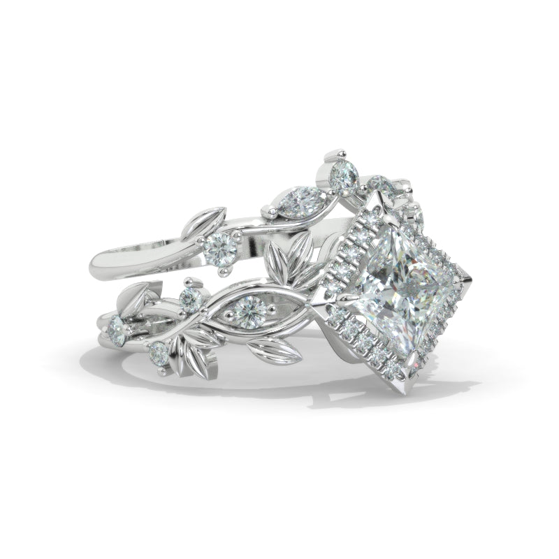 Engagement Ring : Approximately 1+ Carat LAB-Grown Diamond Princess Cut 6x6mm D-Colorless, VVS1-Clarity, VG-Cut, Ex-Polish, VG-Symmetry Center Stone with Colorless 0.23 CTW LAB-Grown Diamond