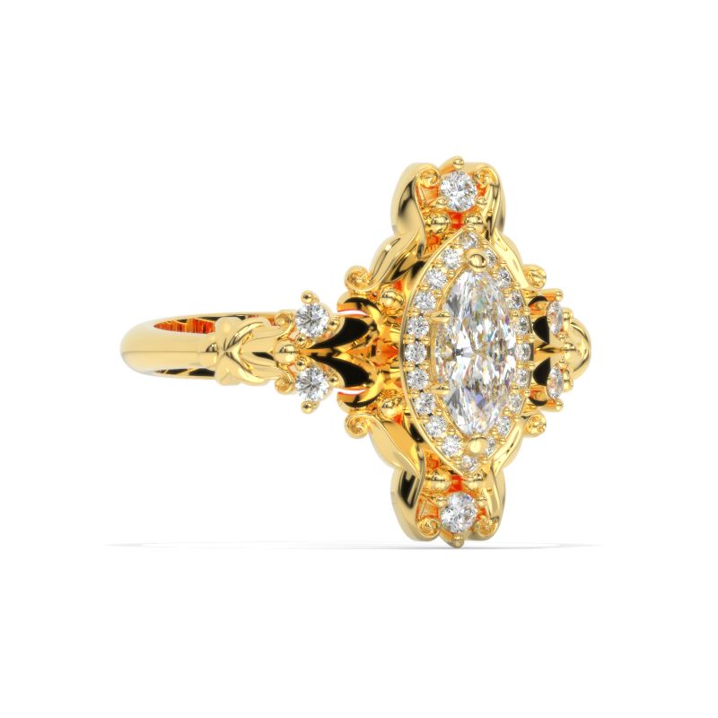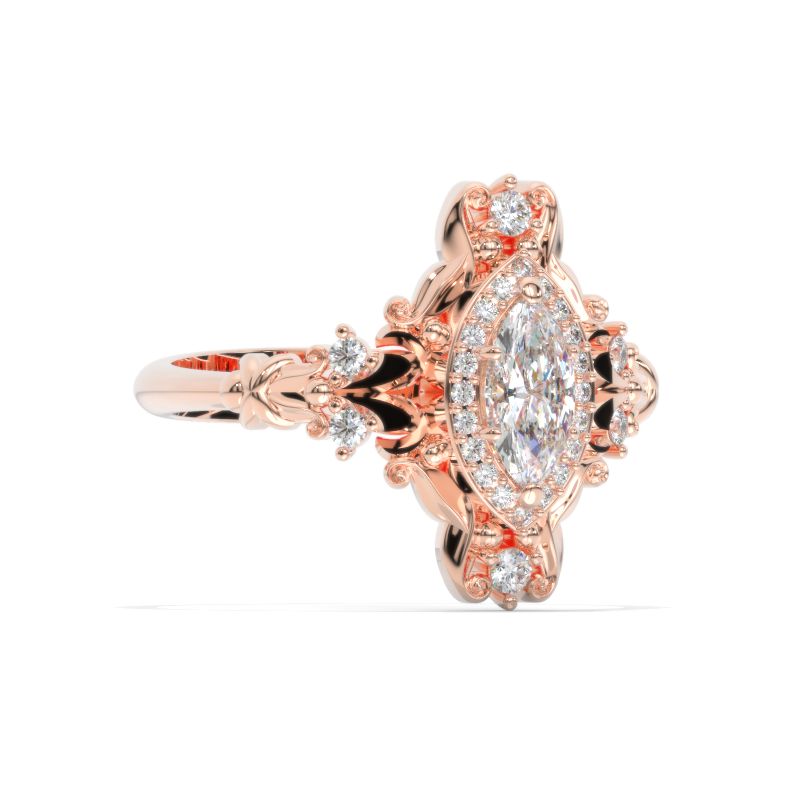 The default design option features 8x4mm Marquise Center Stone, D-Colorless, VVS1-Clarity, VG-Cut, Ex-Polish, VG-Symmetry
