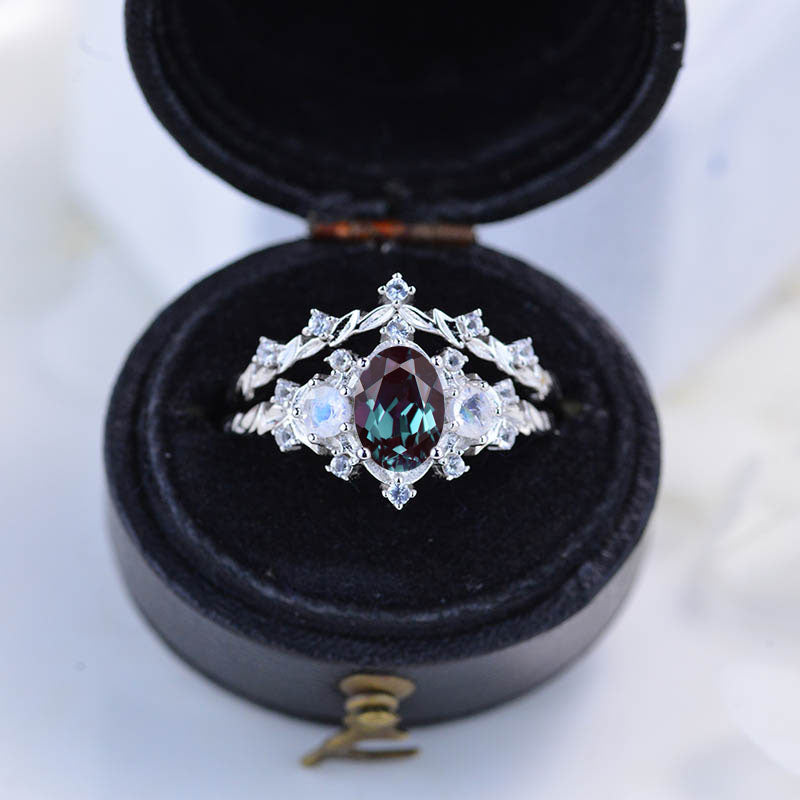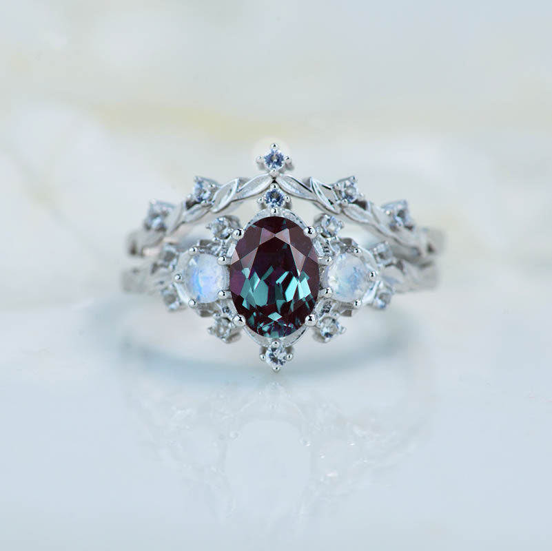 1 Carat Ethically LAB-Grown Alexandrite Oval 7x5mm Center Stone with-0.4 CTW  Moissanite