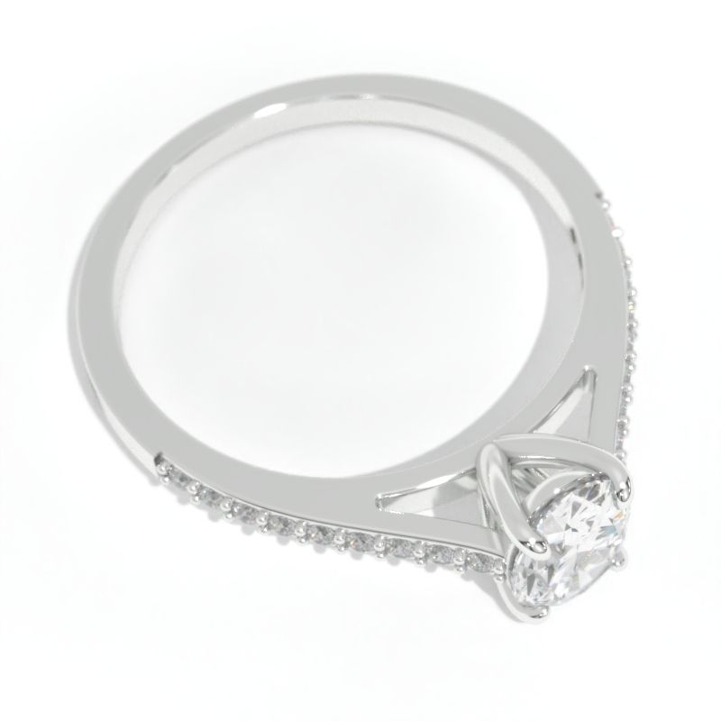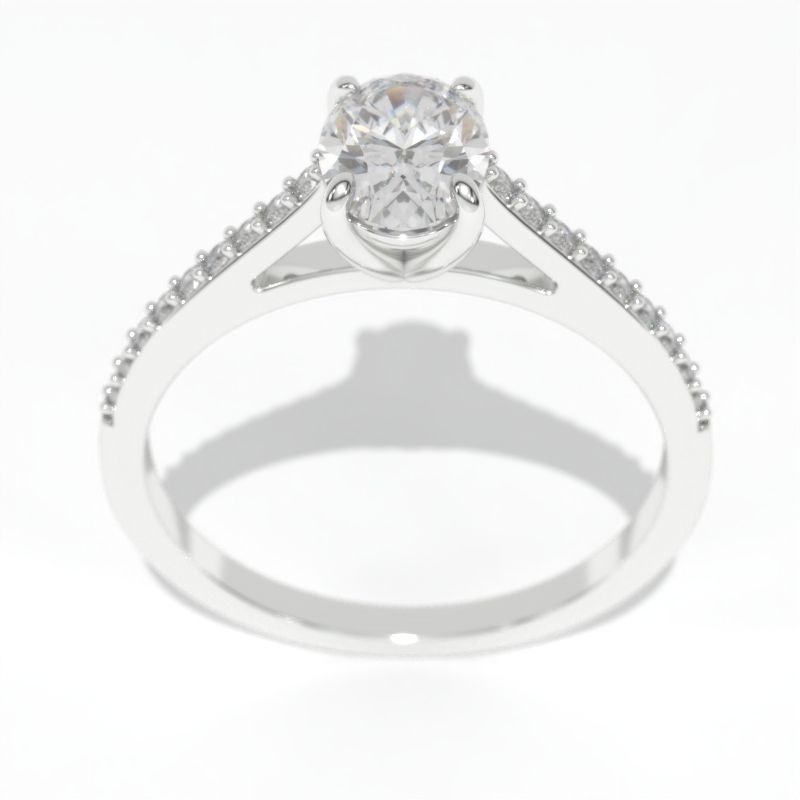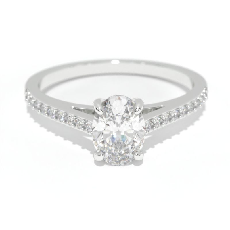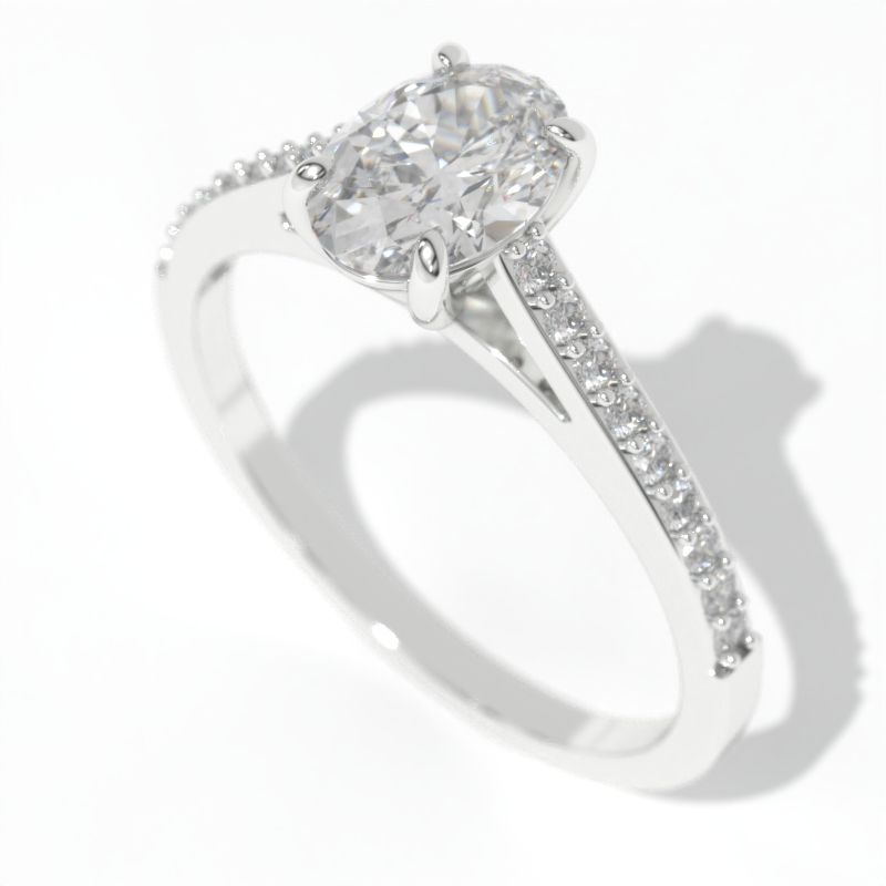 1 Carat Giliarto Moissanite Stones (Oval 7x5mm, D-Colorless, VVS1-Clarity, Ex-Cut, Ex-Polish, VG-Symmetry) and 0.2 CTW Accent Stones in 14K White Gold.