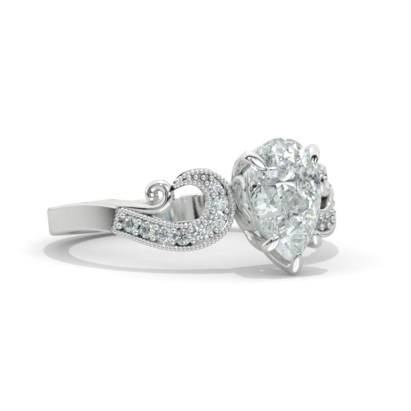 1 Carat Pear Cut LAB-Grown Diamond Floral Engagement Ring Model 1219