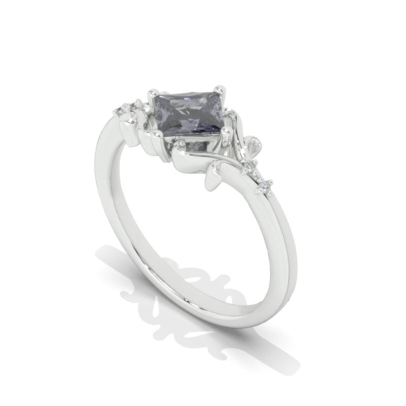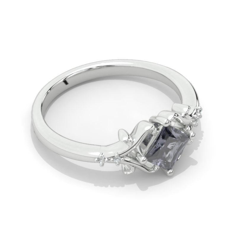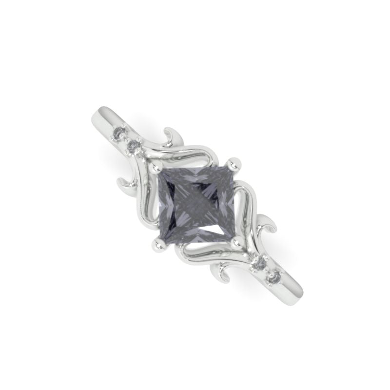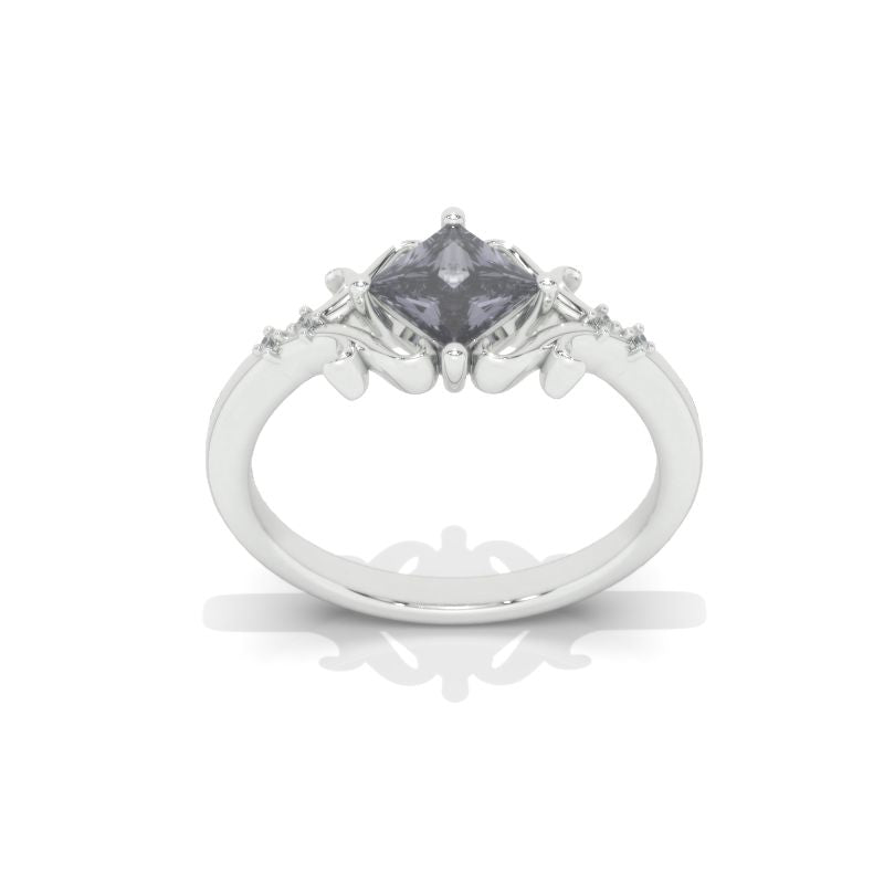 1 Carat Gray Grey Giliarto Moissanite center stone ( VVS1-Clarity, Ex-Cut, Ex-Polish, VG-Symmetry) and 16 moissanite accent stones (0.3 CTW D-Colorless, VVS1 clarity) with Â