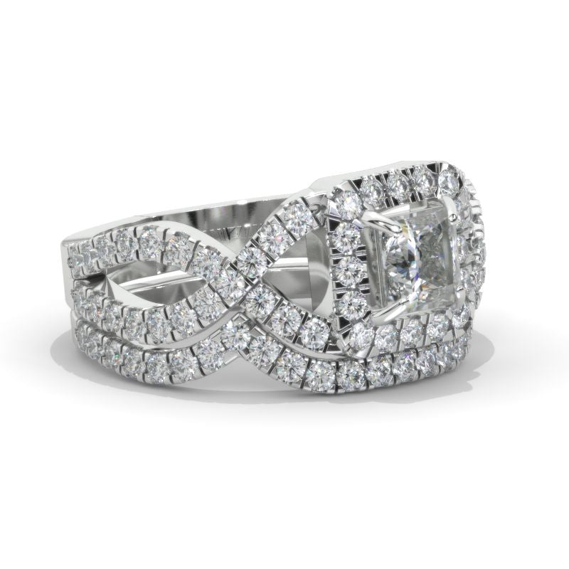 EngagementRing: Approximately 1+Carat LAB-Grown Diamond Princess Cut 5x5mm D-Colorless, VVS1-Clarity, VG-Cut, Ex-Polish, VG-Symmetry Center and Accent Stonein 14K White Gold Ring.