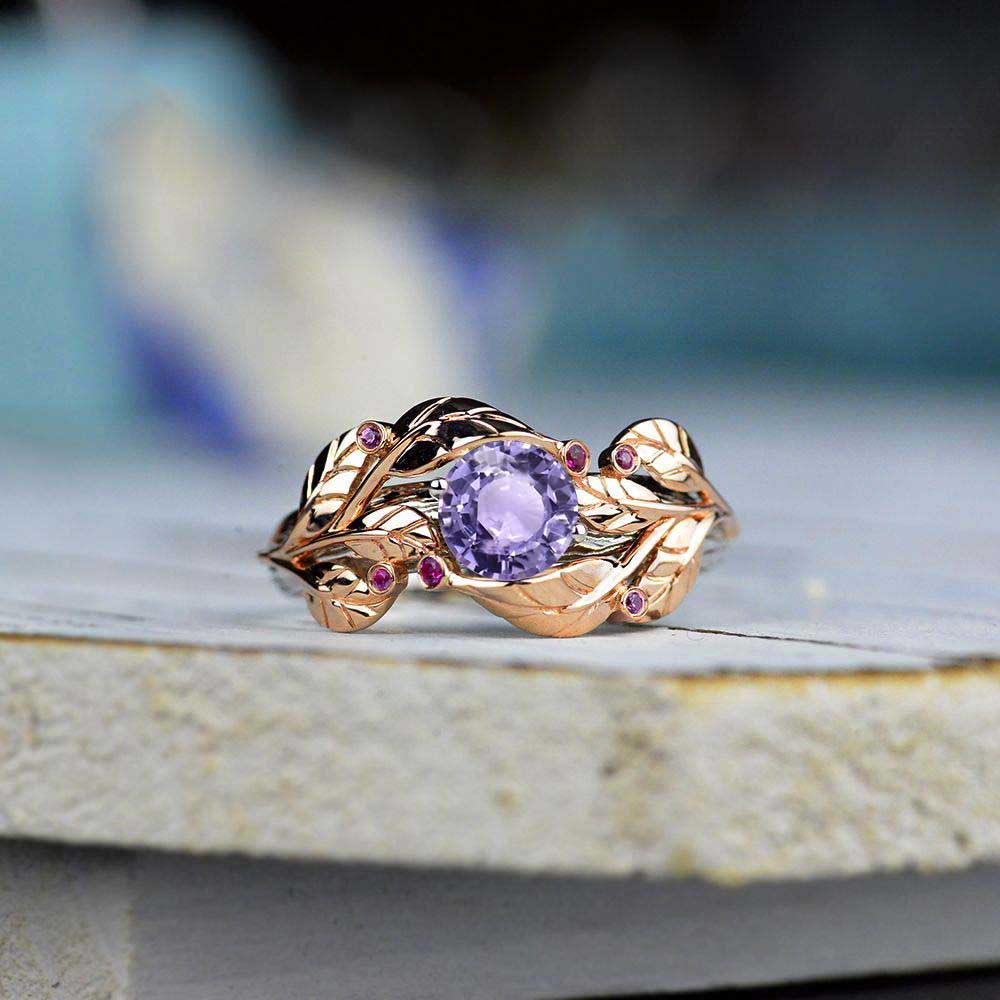 1 Carat Purple Sapphire Engagement Ring 14K Rose and White Gold-6 Genuine Ruby Accents