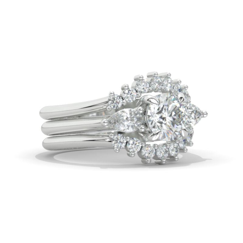 The default design option features 6mm Round Cut LAB-Grown Diamond Center Stone D-Colorless VVS1-Clarity, VG-Cut, Ex-Polish, VG-Symmetry with Approximately 0.4+ CTW LAB-Grown Diamond Accent Stones