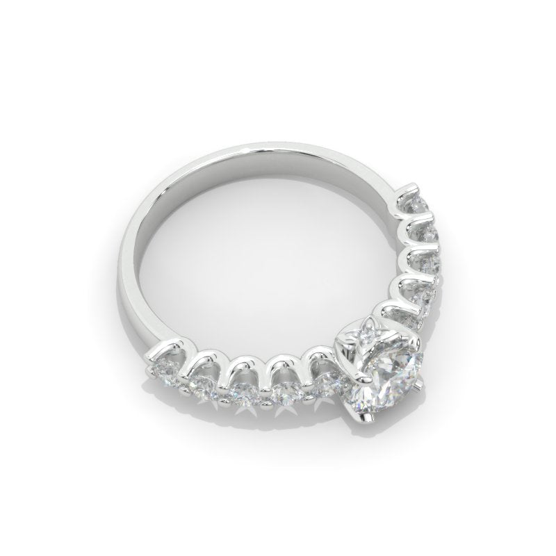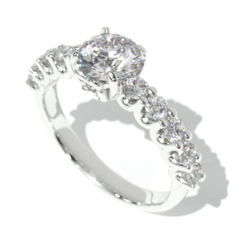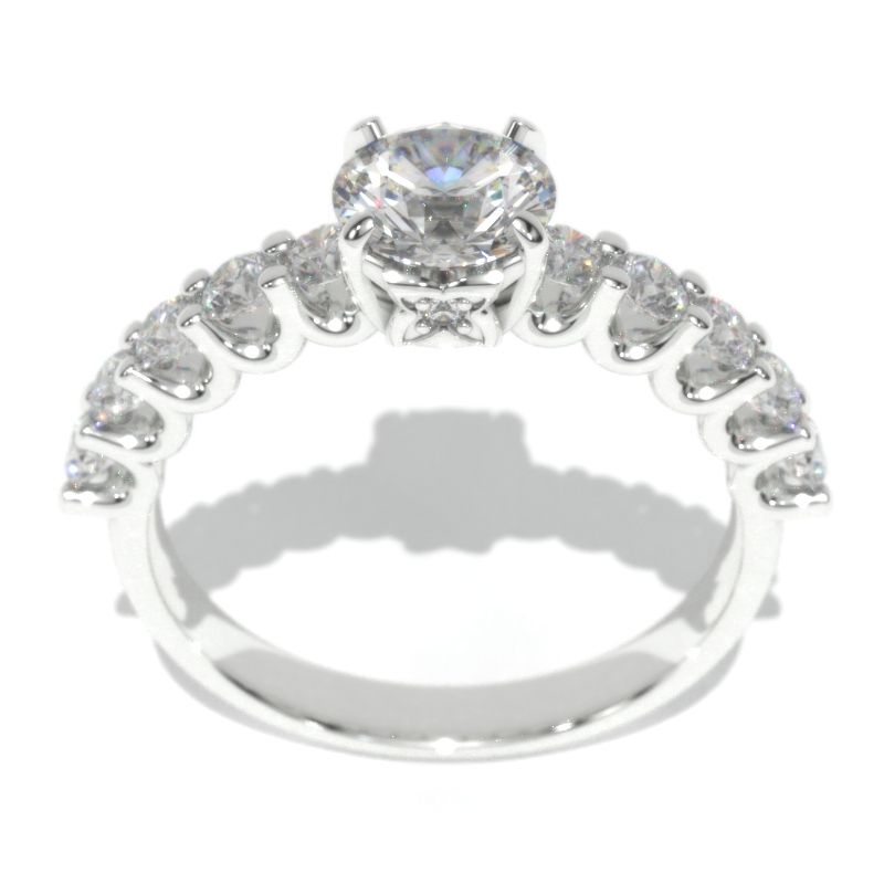 1 Carat Giliarto Moissanite Stones (Round 6mm, D-Colorless, VVS1-Clarity, Ex-Cut, Ex-Polish, VG-Symmetry) and 0.7 CTW Accent Stones in 14K White Gold.
