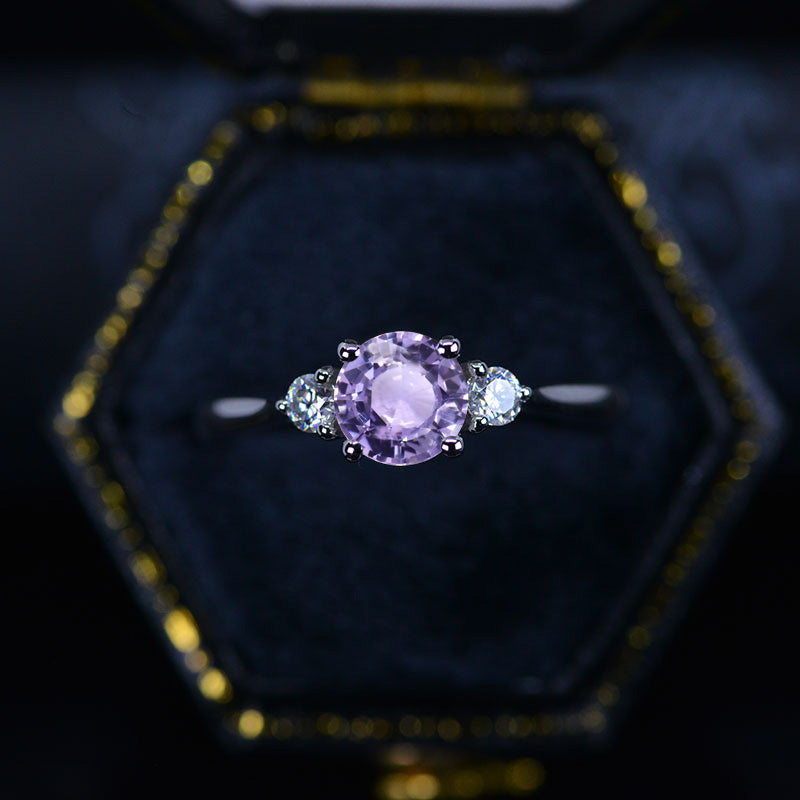 1 Carat Three Stone Lavender Purple Sapphire White Gold Engagement Rin - Giliarto