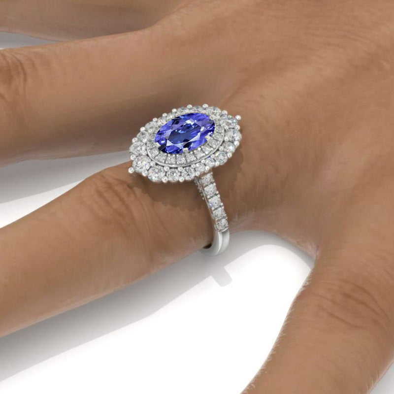 1 Ct Natural Genuine Tanzanite Double Halo Engagement Ring, Vintage Ov - Giliarto