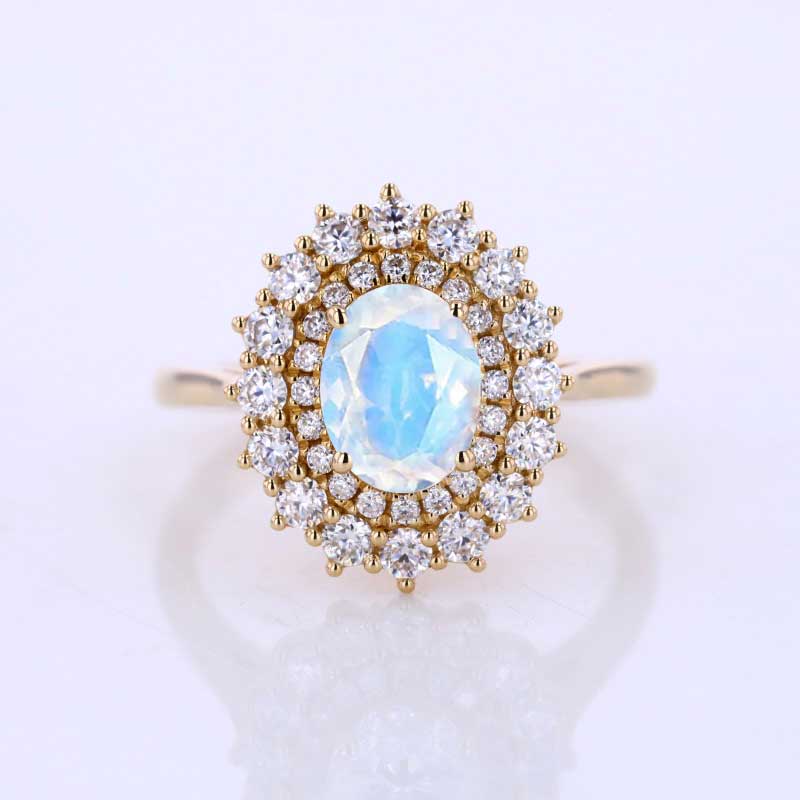 1 Ct Natural Moonstone Double Halo Engagement Ring, Vintage Oval Shape - Giliarto