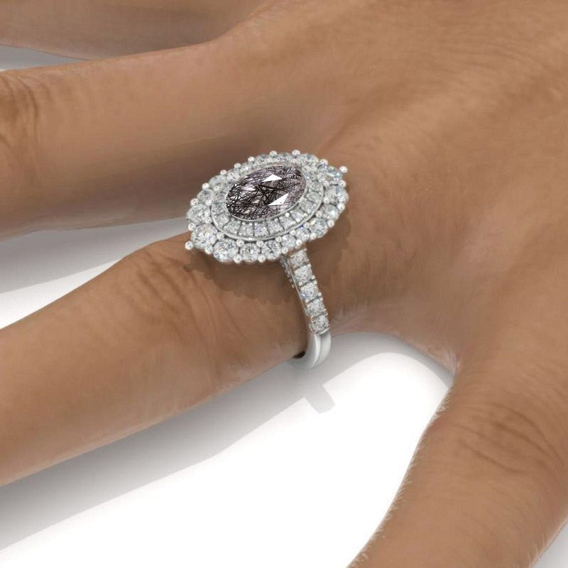 1 Ct Natural Rutilated Quartz Double Halo Engagement Ring, Vintage Ova - Giliarto