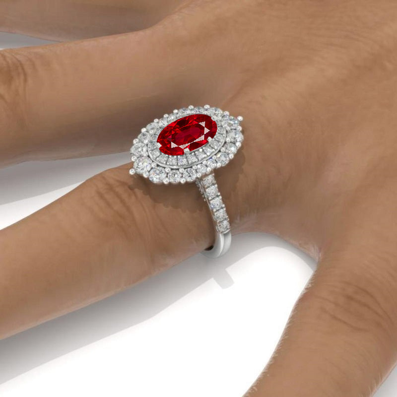 1 Ct Ruby Double Halo Engagement Ring, Vintage Oval Shape Cut Ruby Eng - Giliarto