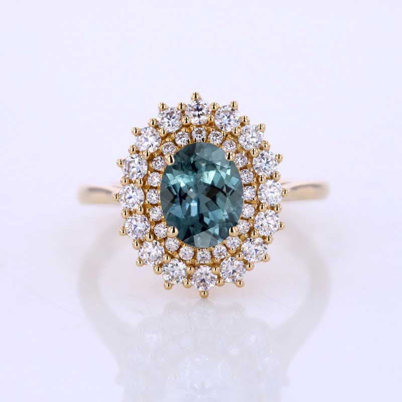1 Ct Teal Sapphire Double Halo Engagement Ring, Vintage Oval Shape Cut - Giliarto
