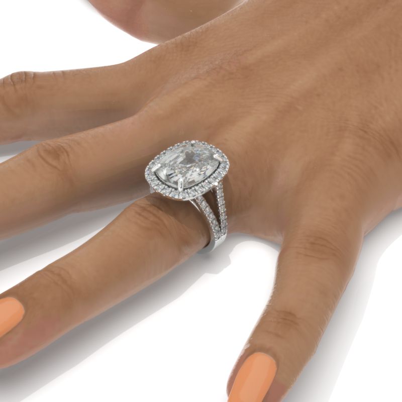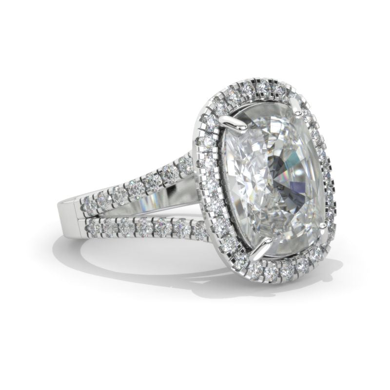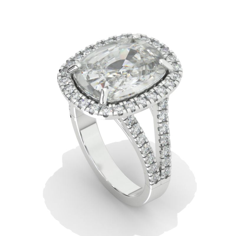 10 Carat Cushion LAB-Grown Diamond Halo 14K White Gold Engagement Ring Model 808