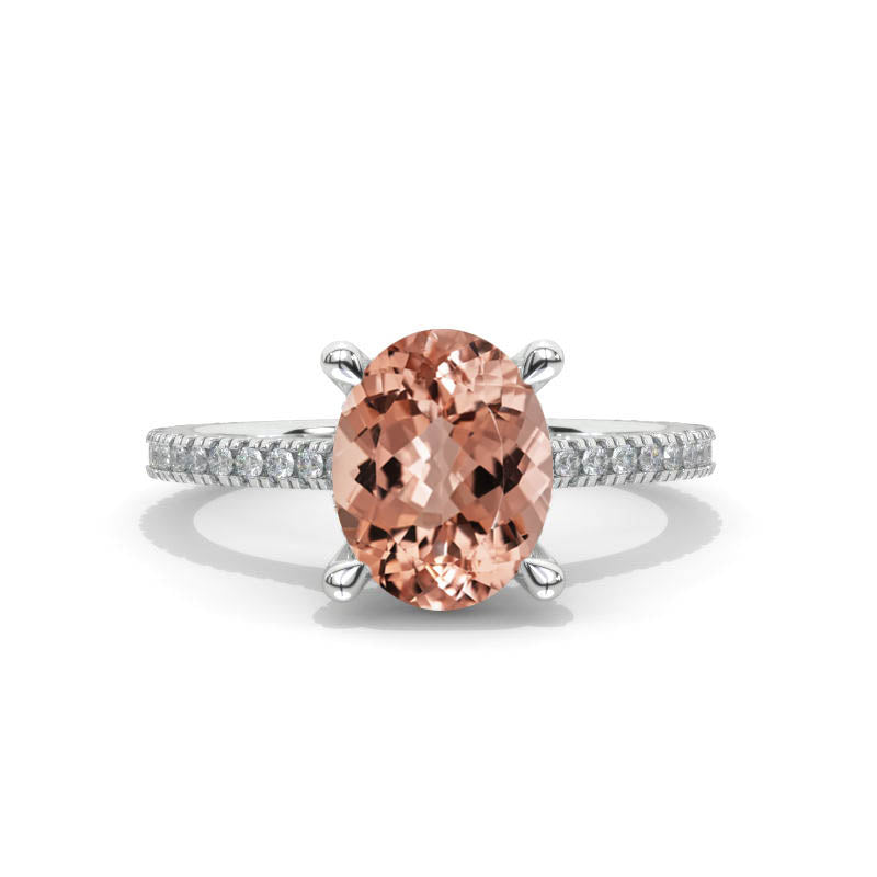 10 Carat Oval Cut 14x10mm Genuine Peach Morganite Hidden Halo White Gold Engagement Ring Model 534_OV14x10