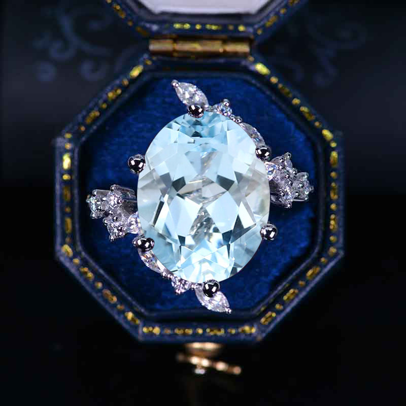 10 Carat Oval Genuine Natural Aquamarine Floral Platinum Engagement Ri - Giliarto