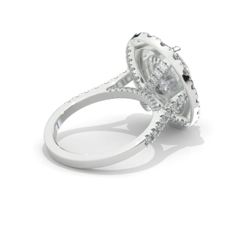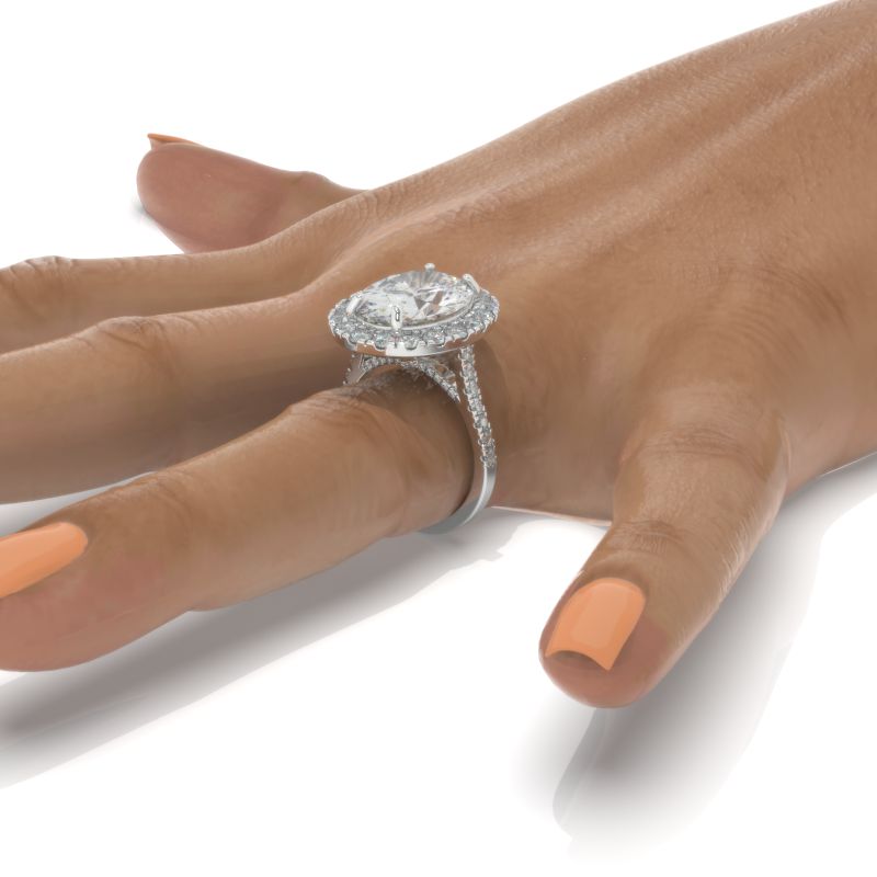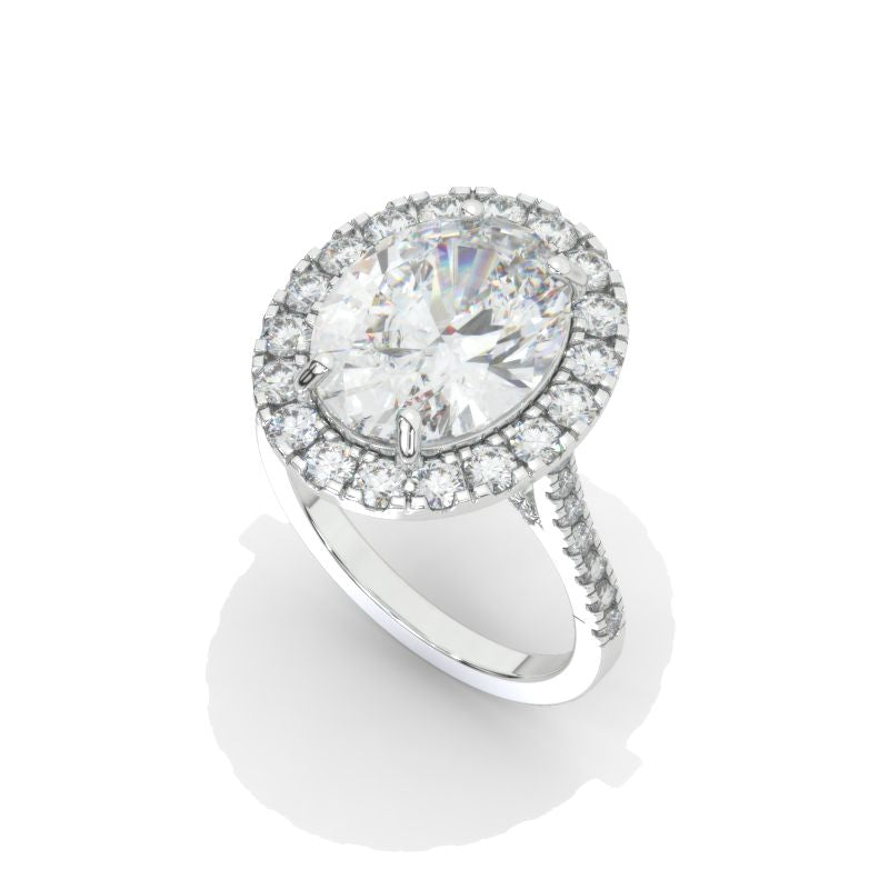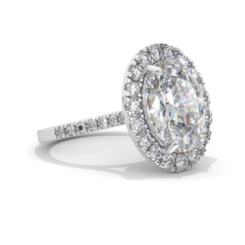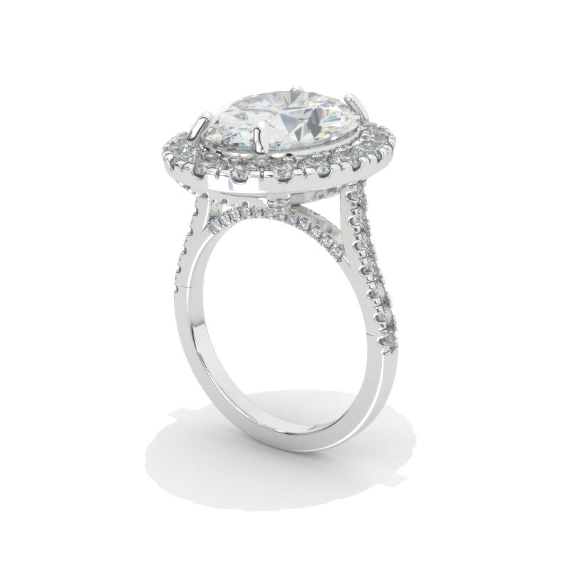 approximately 10+ Carat LAB-Grown Diamond 14x11mm Oval Center Stone D-Colorless, VVS1-Clarity, Ex-Cut, Ex-Polish, VG-Symmetry with 0.35 CTW LAB-Grown Diamond (D-Colorless, VVS1 clarity) French-Set Accent Stones 14K White Gold Ring.