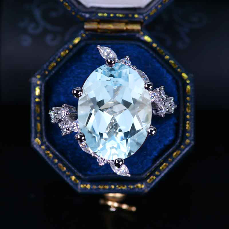 10 Carat Oval Natural Aquamarine Floral Platinum Engagement Ring - Giliarto