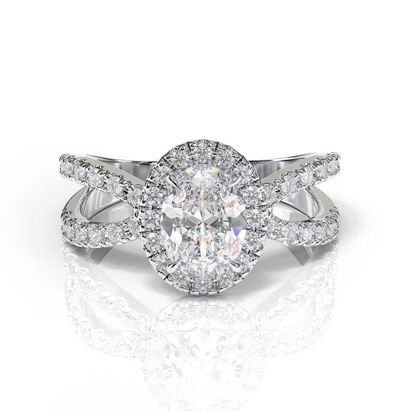 White Gold 1.25 Carat Oval Moissanite Diamond Halo French-Set Engageme - Giliarto