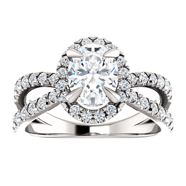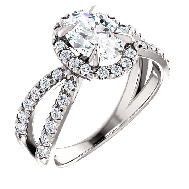 White Gold 1.25 Carat Oval Moissanite Diamond Halo French-Set Engagement Ring