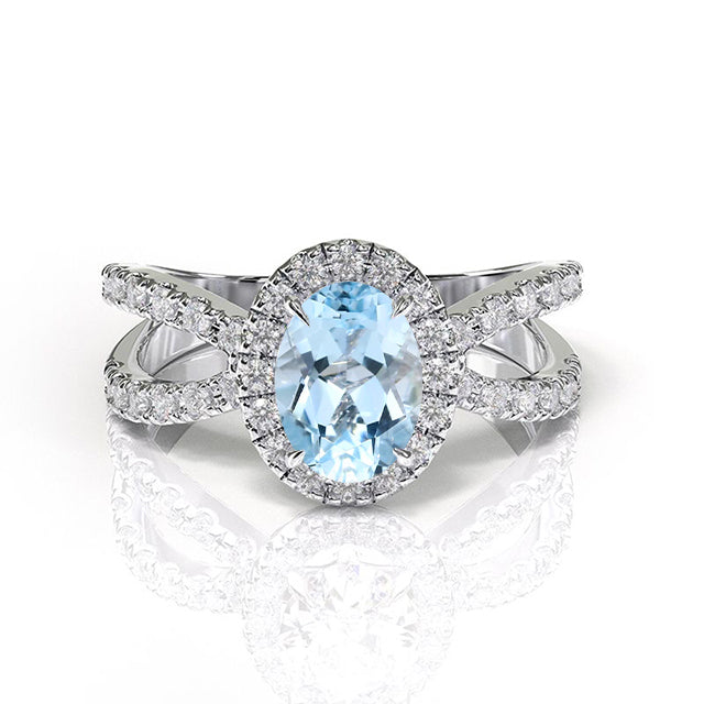 10K White Gold 1.25 Carat Oval Genuine Natural Aquamarine Diamond Halo - Giliarto