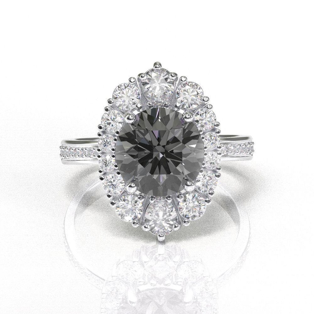 14K White Gold 2 Carat Round Gray Moissanite Halo Engagement Ring