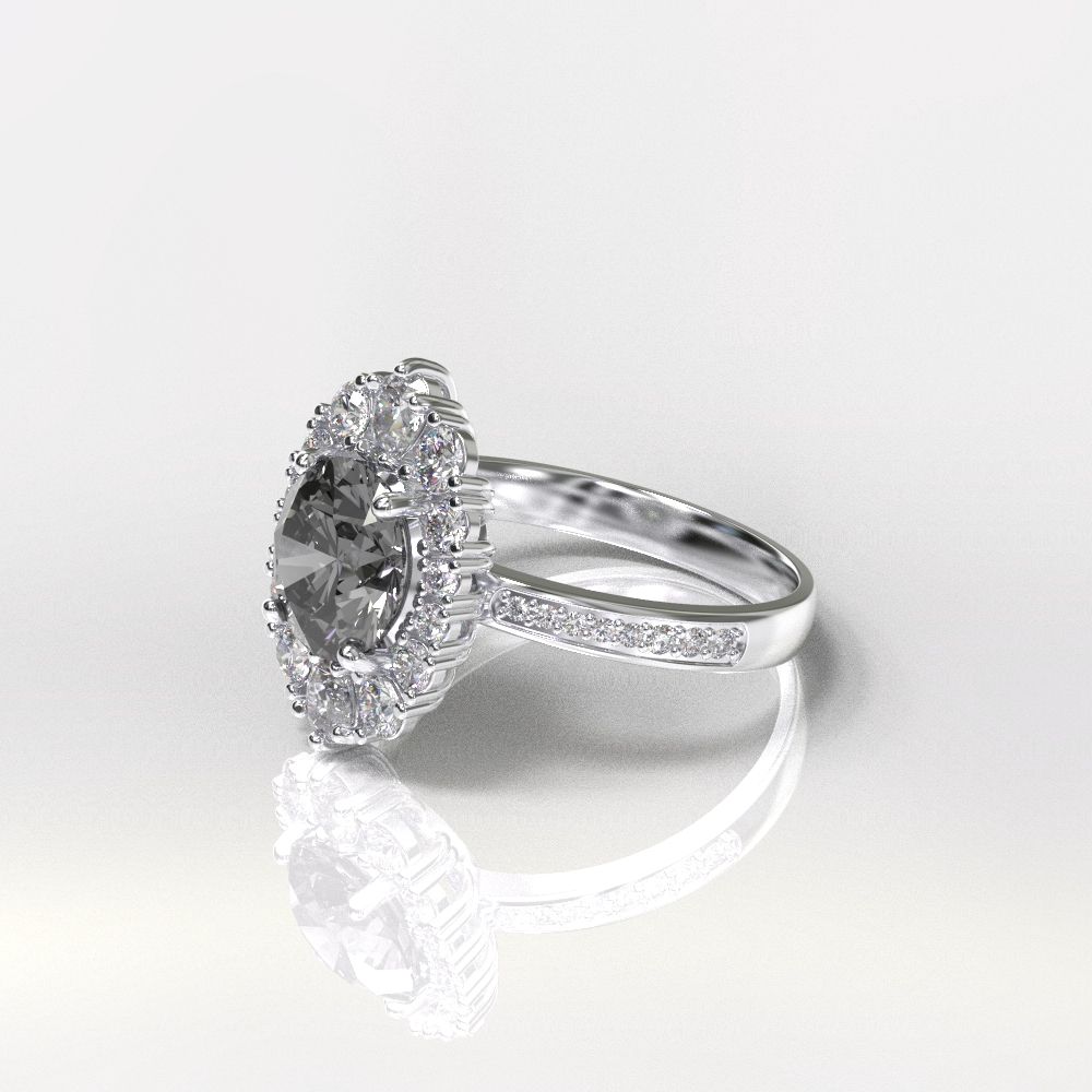 14K White Gold 2 Carat Round Gray Moissanite Halo Engagement Ring - Giliarto