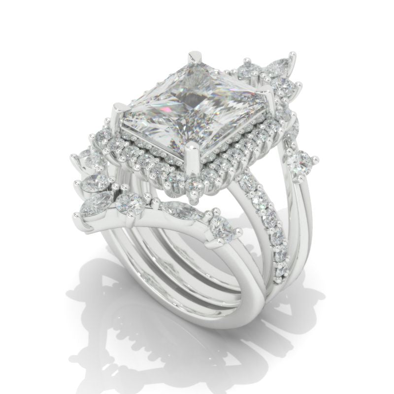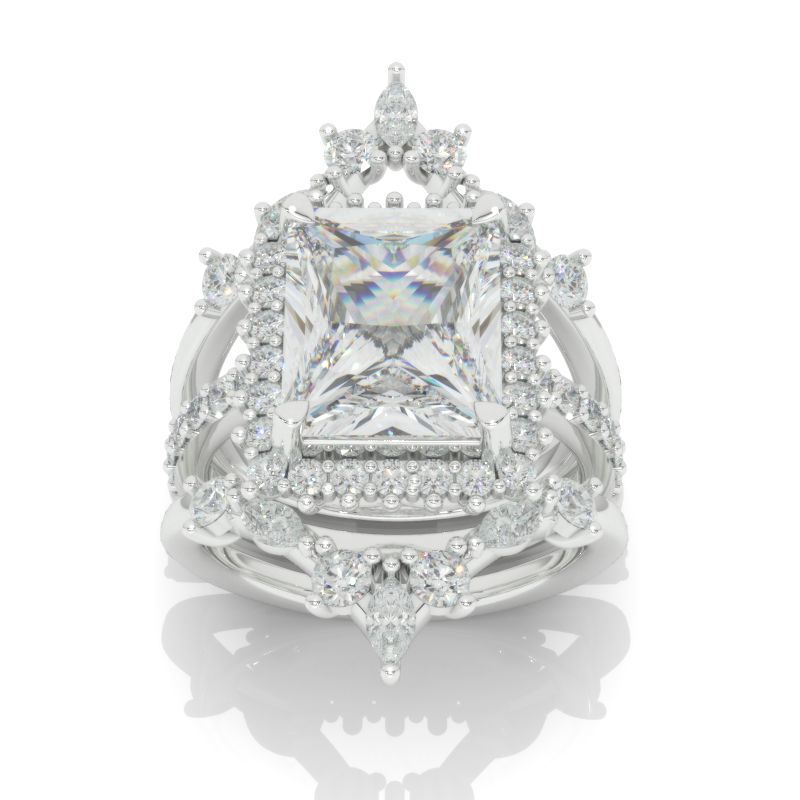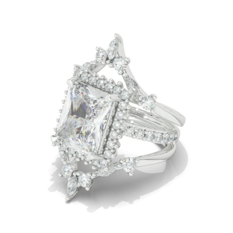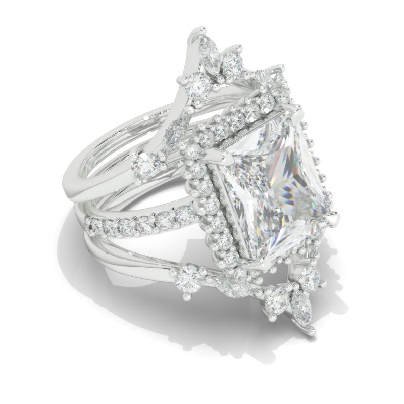 The default design option features 11x9mm Radiant Cut LAB-Grown Diamond Center StoneĀ D-Colorless, VVS1-Clarity, VG-Cut, Ex-Polish, VG-Symmetry set with D- Colorless LAB-Grown DiamondĀ Accent StonesĀ