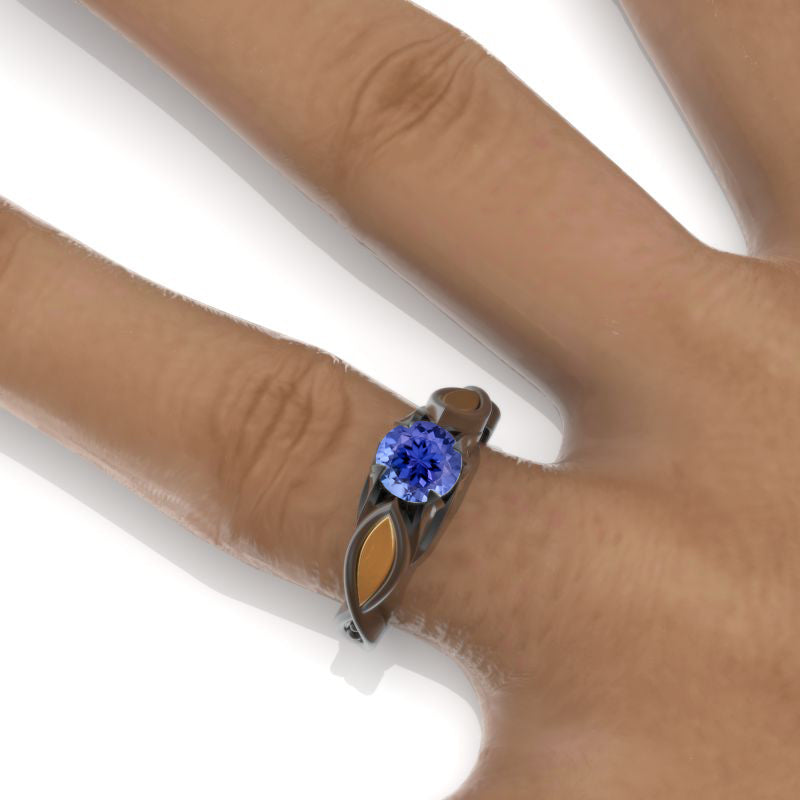 Natural Genuine Tanzanite Center Stone - Round 6mm, Ex-Cut, Ex-Polish, VG-Symmetry) and Yellow Gold Inserts in 14K Black Gold or Black Platinum.