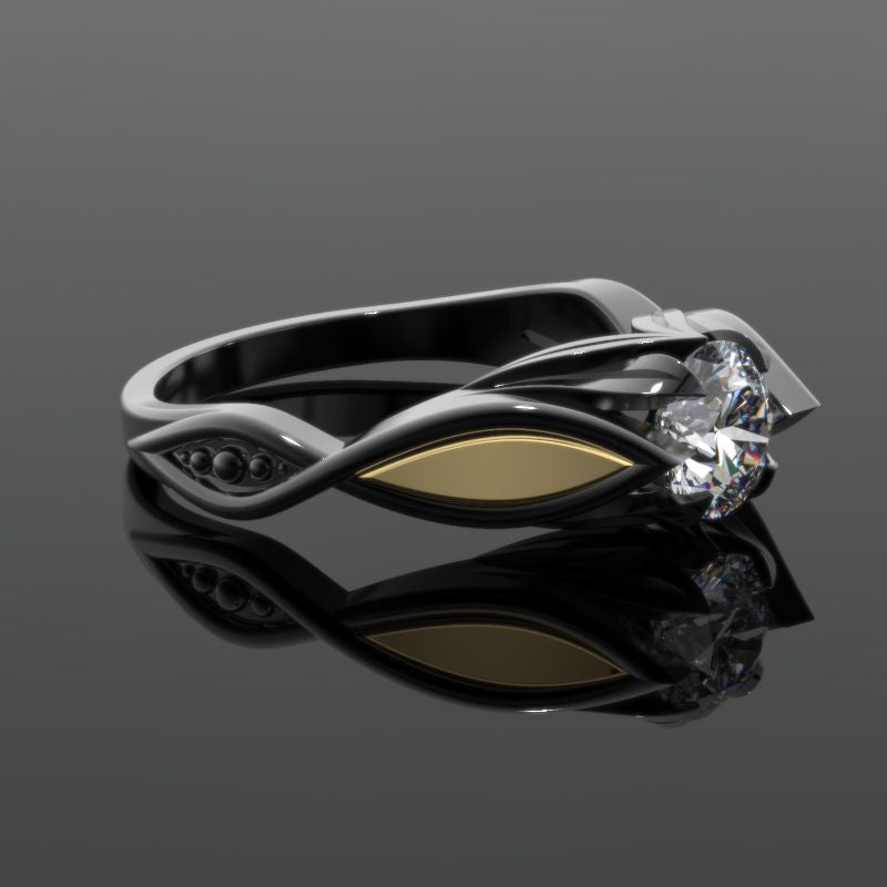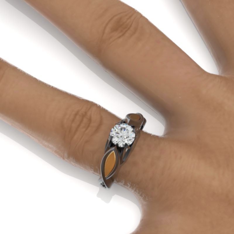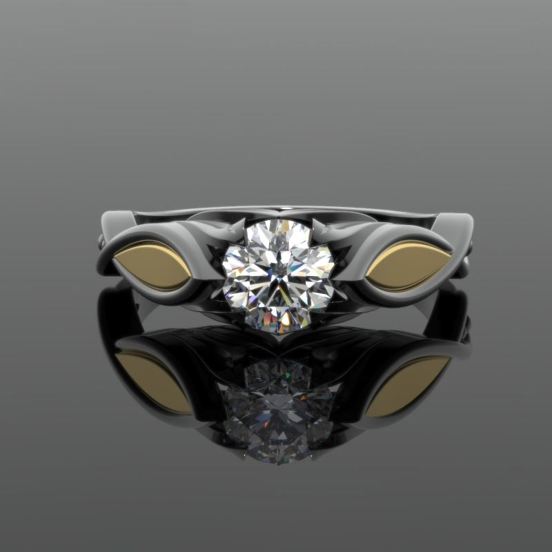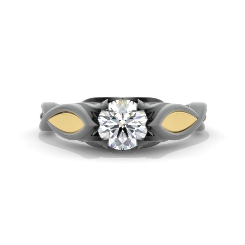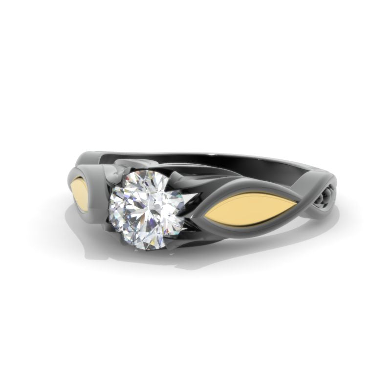 LAB-Grown Diamond Center Stone - Round 6mm, D-Colorless, VVS1-Clarity, Ex-Cut, Ex-Polish, VG-Symmetry) and Yellow Gold Inserts in 14K Black Gold or Black Platinum.