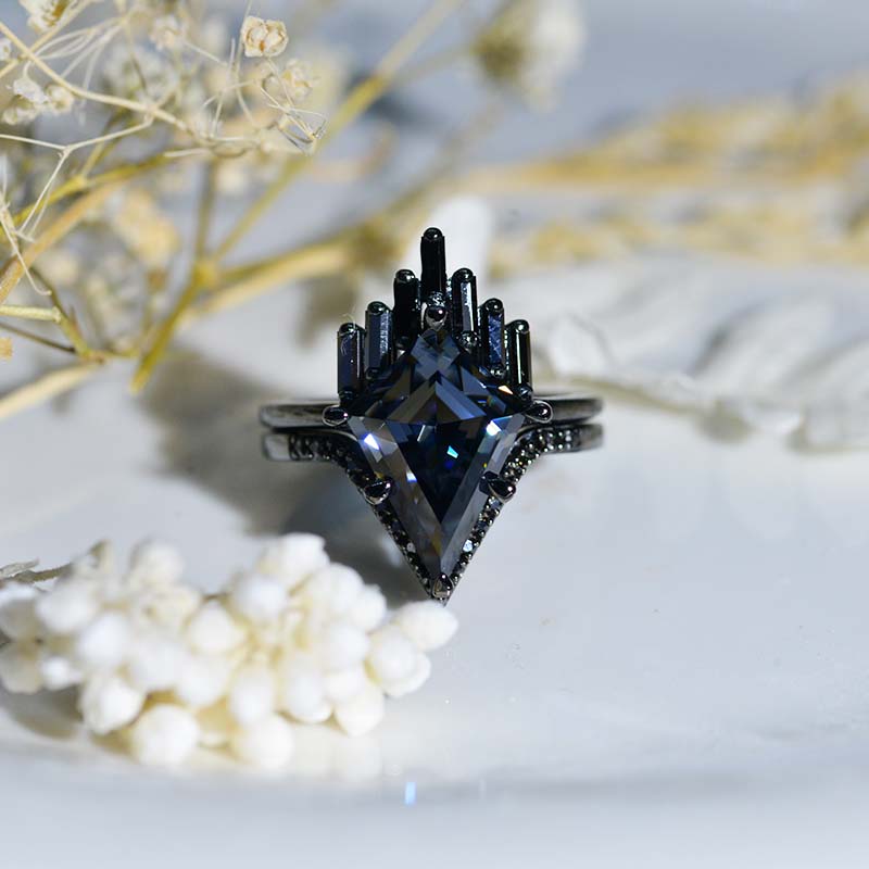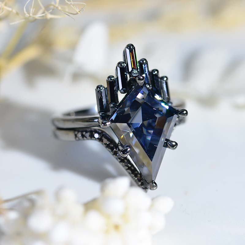 Engagement : 4 Carat Giliarto Moissanite Kite 14x10mm Dark Gray, VVS1-Clarity, VG-Cut, Ex-Polish, VG-Symmetry Center Stone with 38 Colorless 0.5 CTW Moissanite,