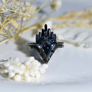 Black  Accent Stones 14K Gold Black Rhodium Coating  Ring.