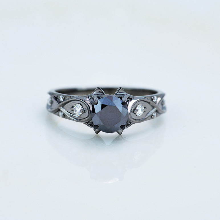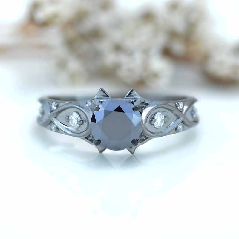 14K Black Gold Black Moissanite Celtic Engagement Ring