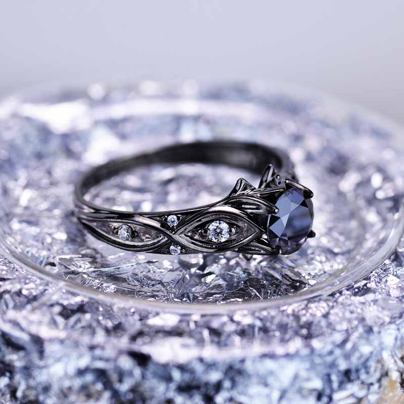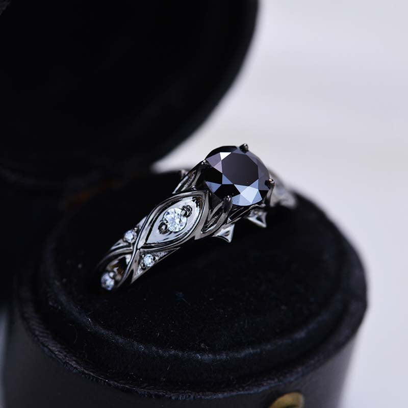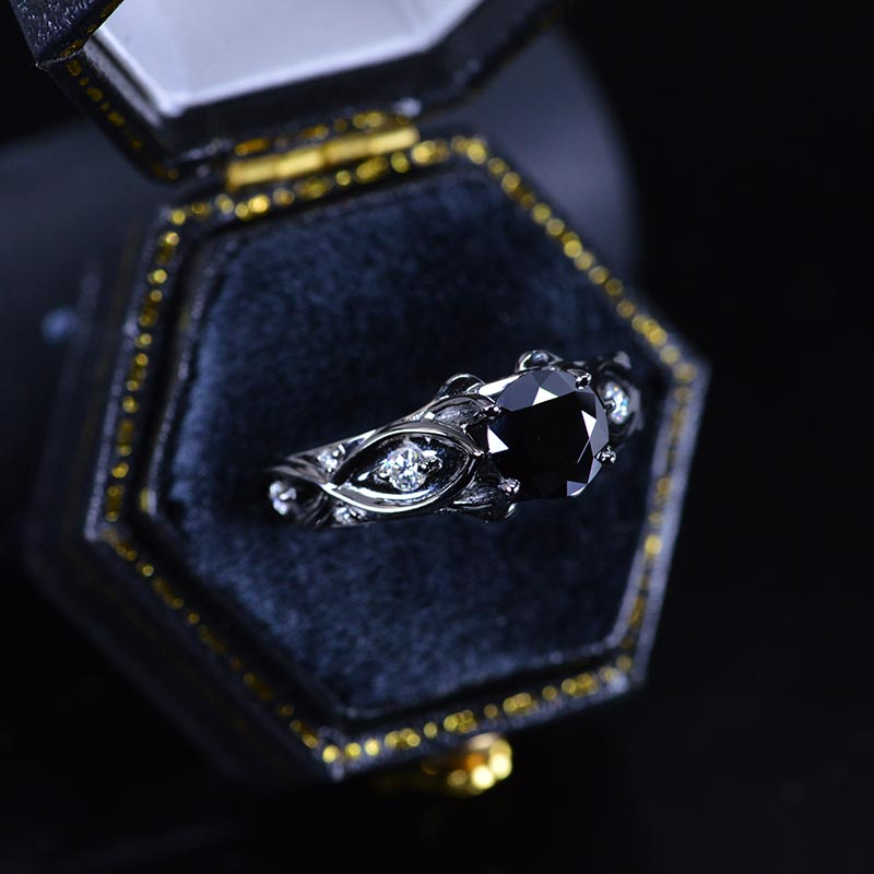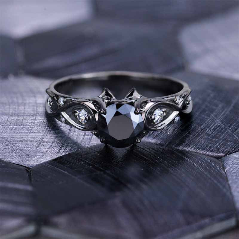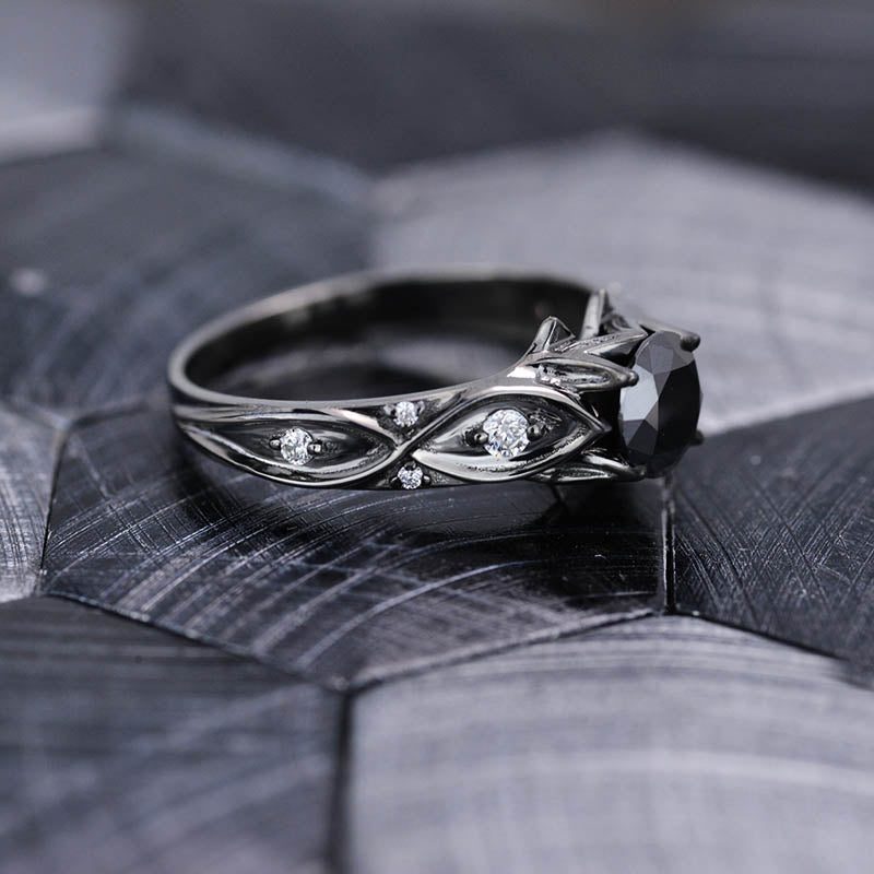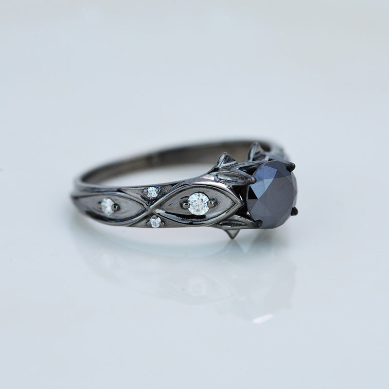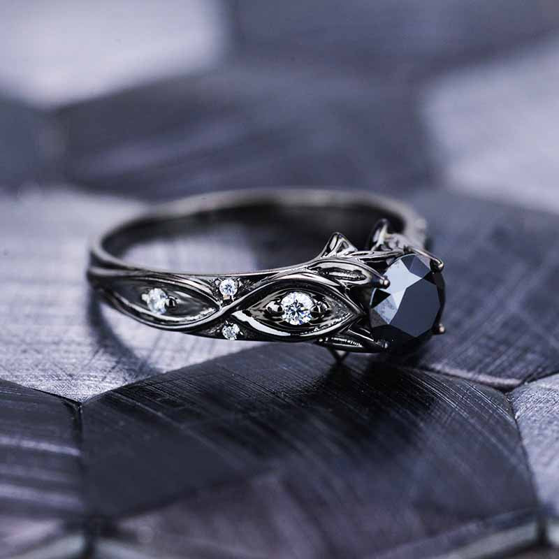 14K Black Gold Black Moissanite Celtic Engagement Ring - Giliarto