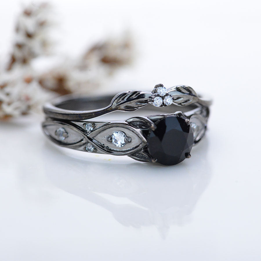 14K Black Gold Black Moissanite Celtic Engagement Ring - Giliarto