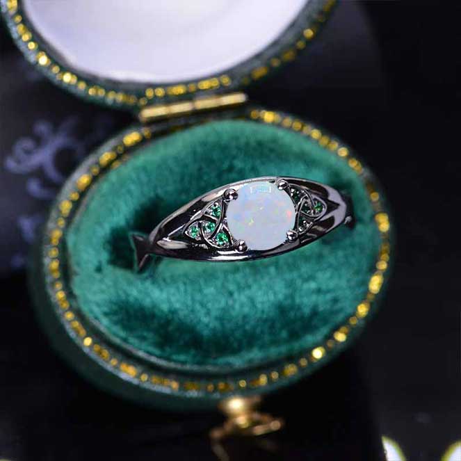 14K Black Gold Celtic Engagement Ring with Genuine White Opal - Giliarto
