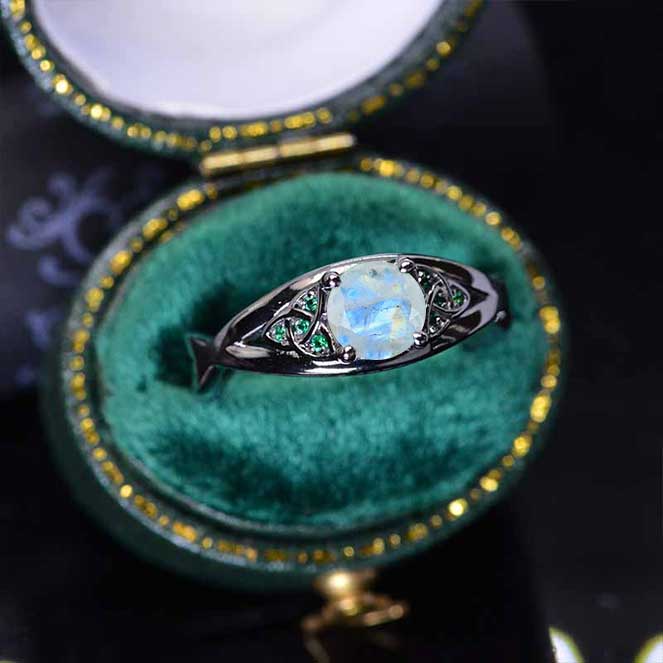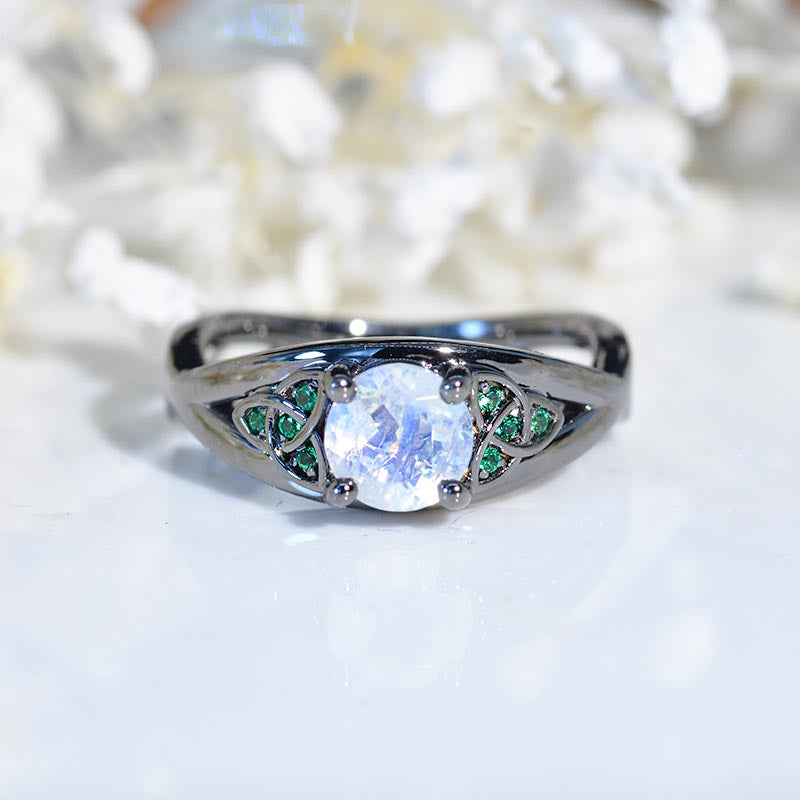 14K Black Gold Celtic Engagement Ring with Natural Moonstone Model 805 - Giliarto