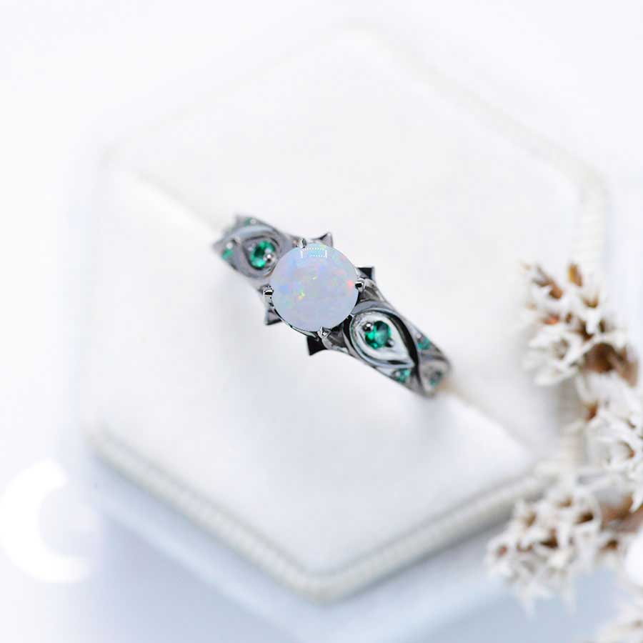 Emerald Center Stone - Round 6 mm, Ex-Cut, Ex-Polish, VG-Symmetry) and 8 - Diamond  Accents  0.1 CTW with 14K Black Gold.