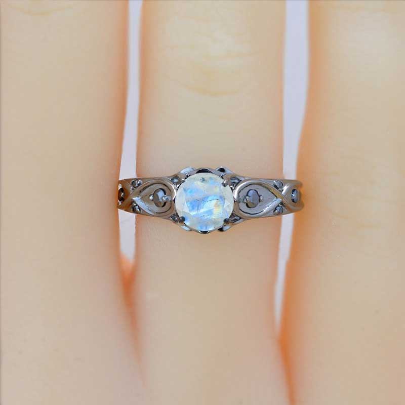 14K Black Gold Genuine Moonstone Celtic Engagement Ring
