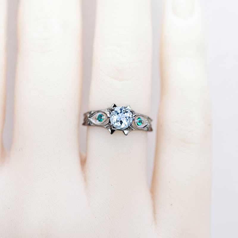 14K Black Gold Genuine Natural Aquamarine Celtic Engagement Ring