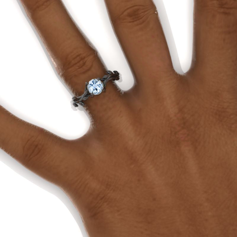 14K Black Gold Genuine Natural Aquamarine Celtic Style Engagement Ring - Giliarto