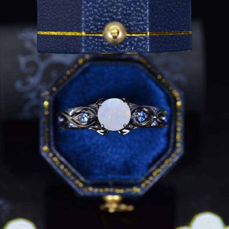 14K Black Gold Genuine White Opal Celtic Engagement Ring