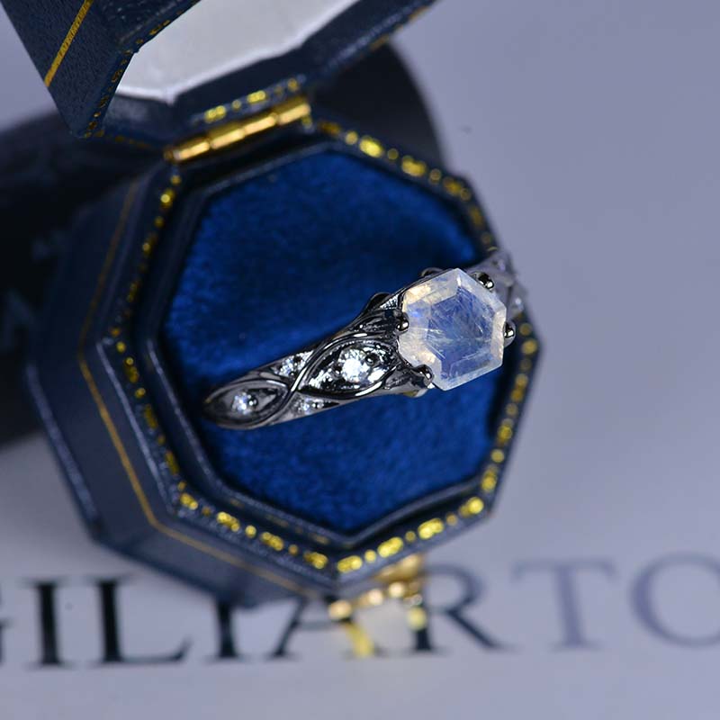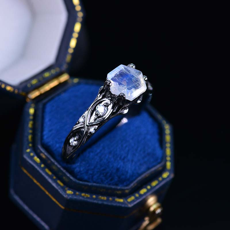 14K Black Gold Hexagon Moonstone Celtic Engagement Ring - Giliarto