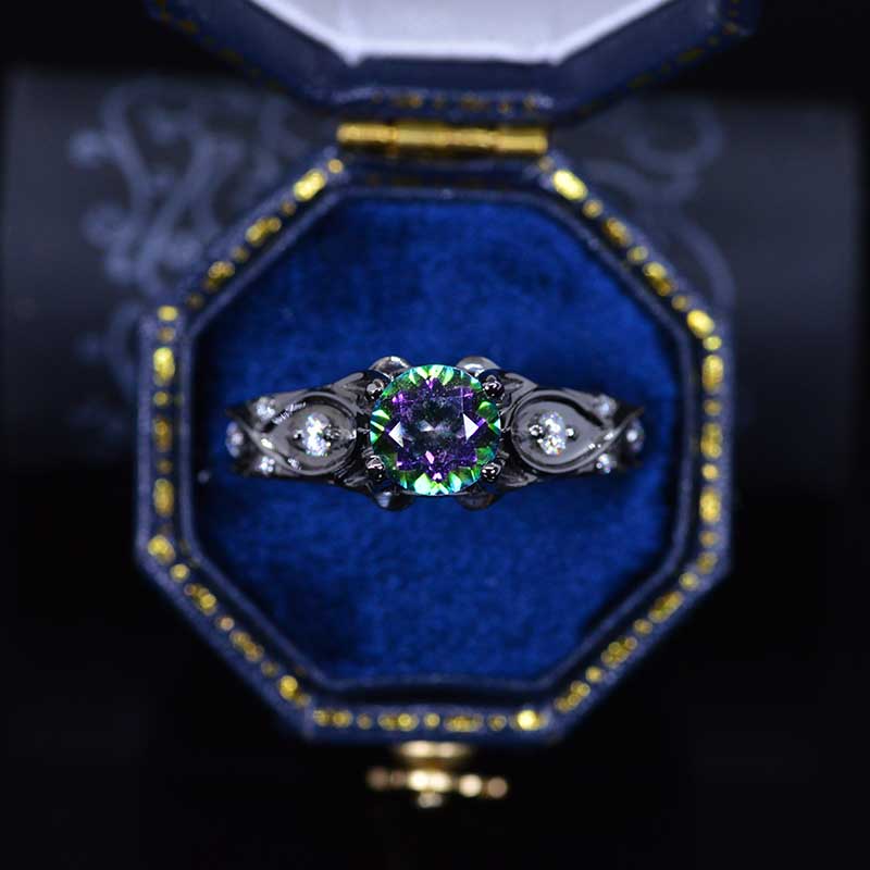 14K Black Gold Silver Mystic Topaz Celtic Engagement Ring