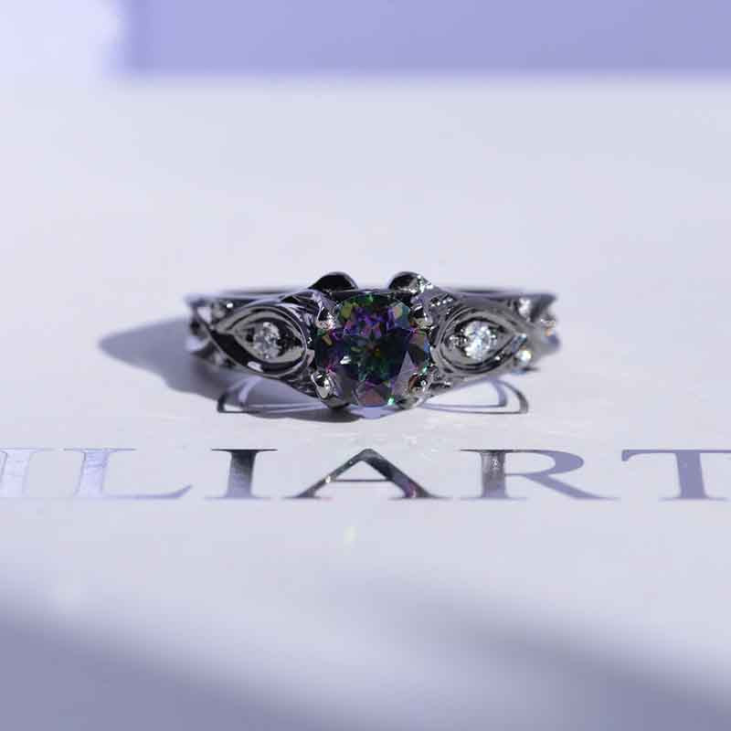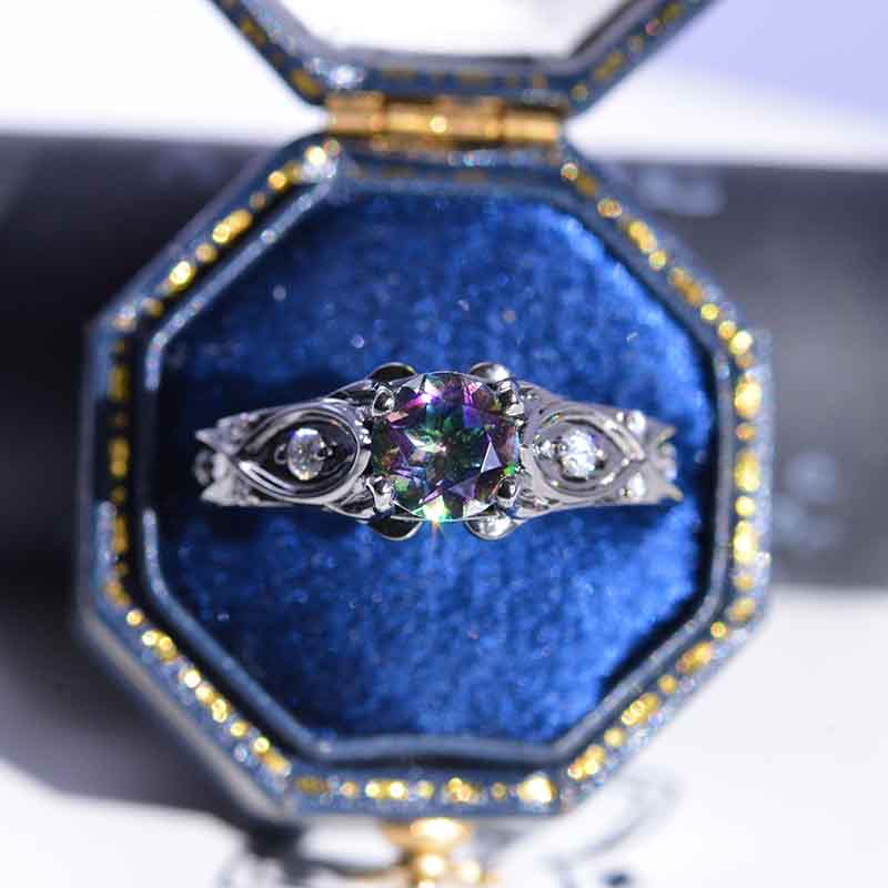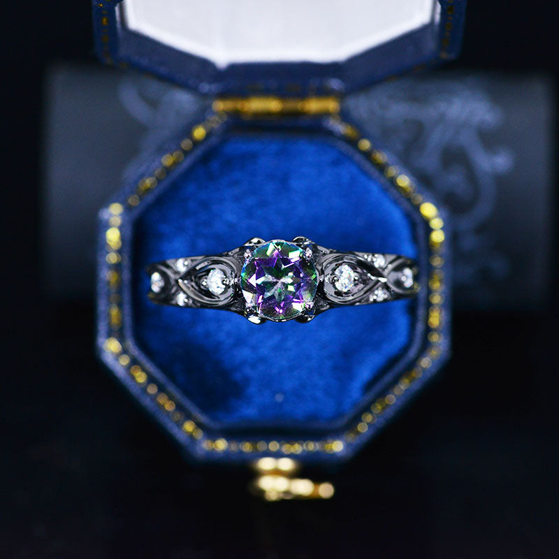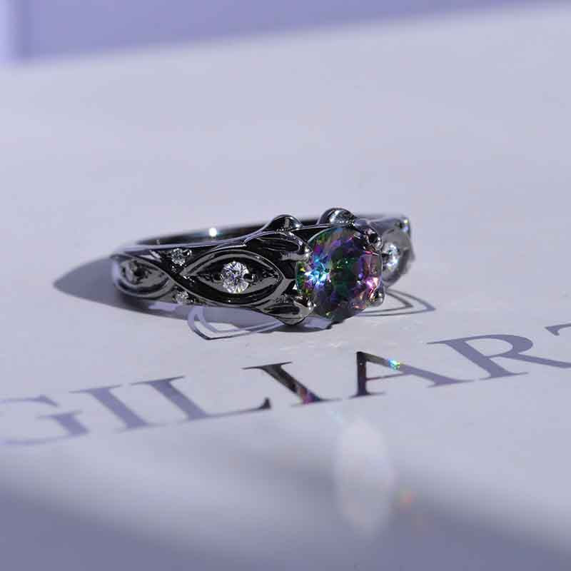 14K Black Gold Silver Mystic Topaz Celtic Engagement Ring - Giliarto