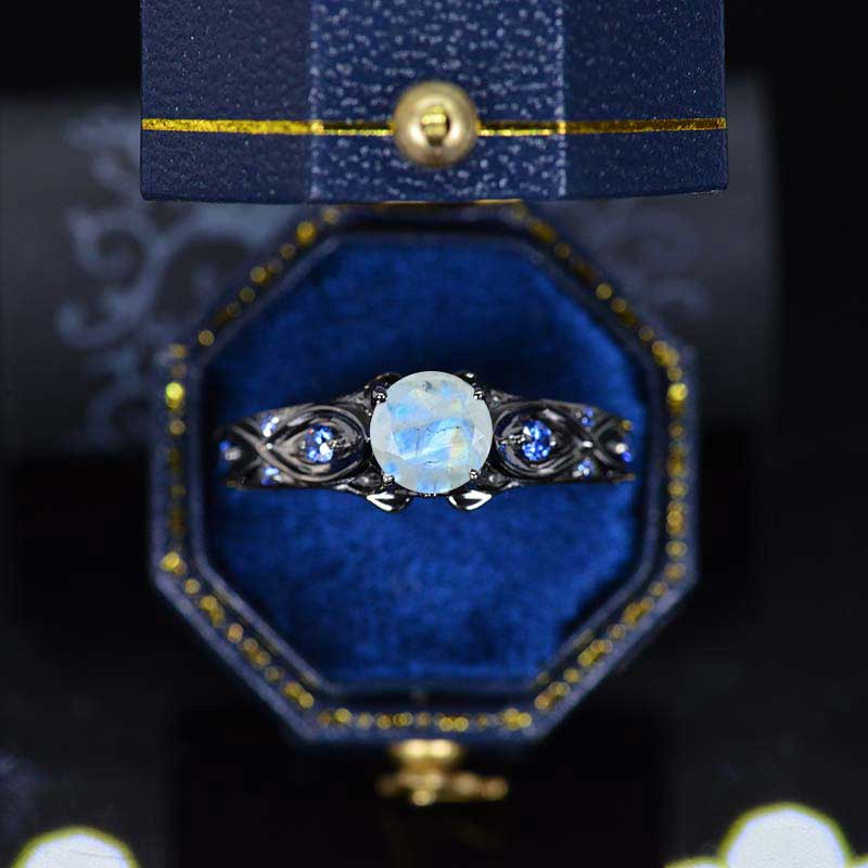 14K Black Gold Natural Moonstone Celtic Engagement Ring