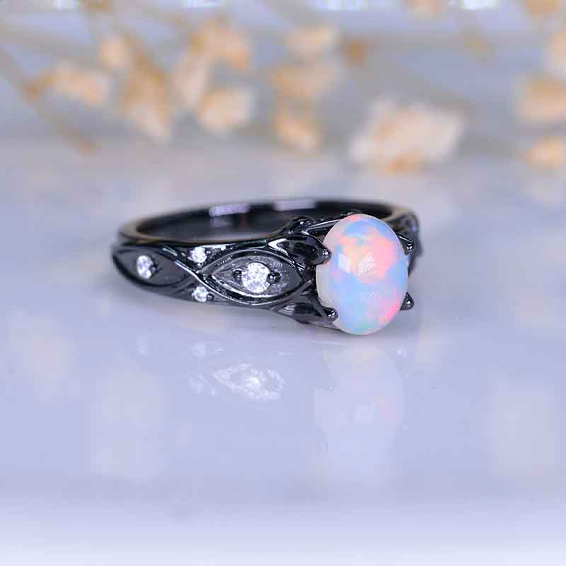 14K Black Gold Oval White Opal Celtic Engagement Ring - Giliarto