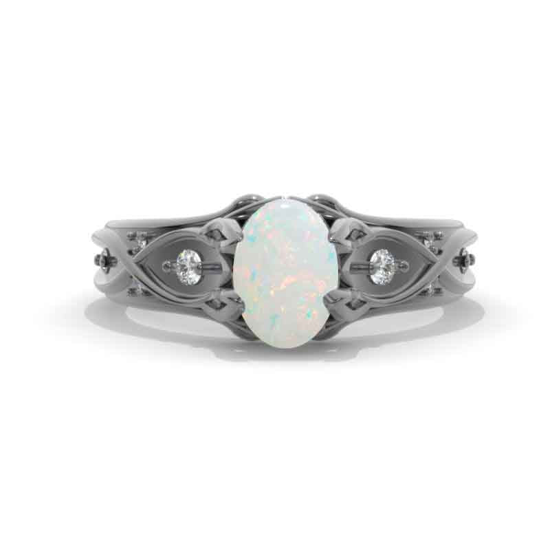 14K Black Gold Oval White Opal Celtic Engagement Ring