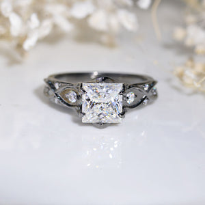 14K Black Gold Princess Cut Moissanite Celtic-Style Engagement Ring