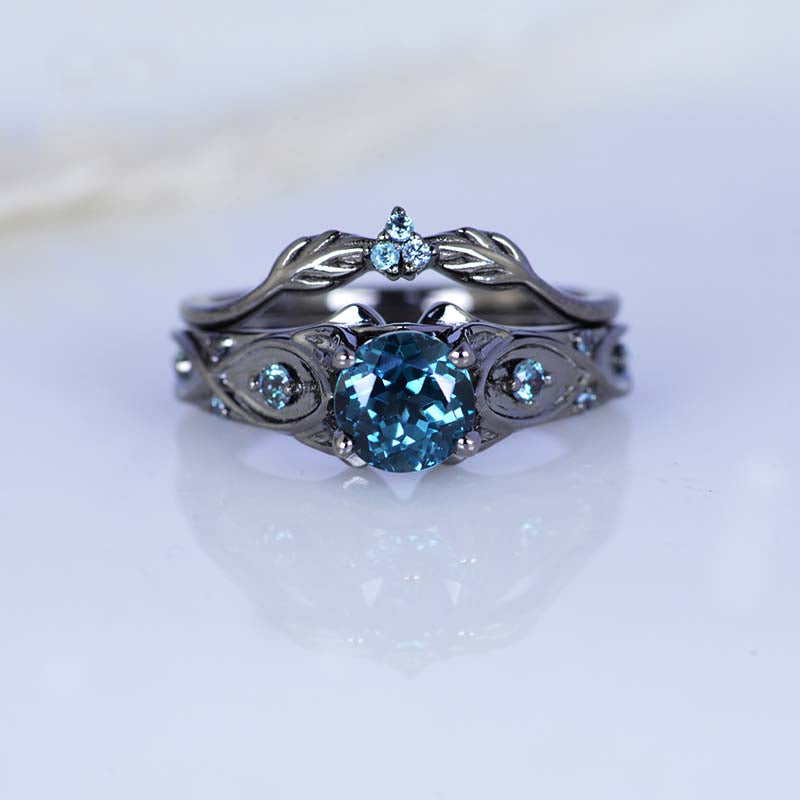 14K Black Gold Teal Sapphire Celtic Engagement Ring Mode 33